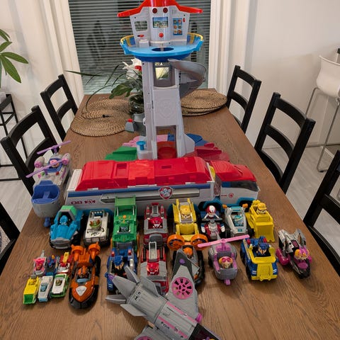 Myydään pakettina Ryhmä Hau-leluja. Pakettiin kuuluuhan Hau Vaunu, Vahtitorni ja 13 kpl Ryhmä Hau -ajokkia+pentu sekä yksittäisiä pentuja ja Ryhmä Hau -merkkejä.