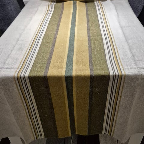 Käsin kudottu pellavapöytäliina.