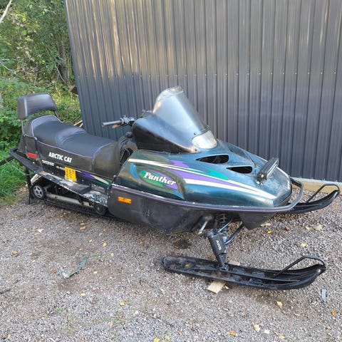 Hyväkuntoinen,ajettu vain 12000 km. Vasta uusittu matto,nastoilla.Pleksi,penkki,ym.täysin ehjät.Suksissa levikemuovit