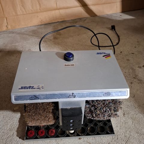 Myydään kengänkiillotuskone! Harjat pesty, toisessa värjäymää lankista. Kiillotusaineen säiliötä ei ole koskaan käytetty. Helppokäyttöinen. Nouto Helsingistä.