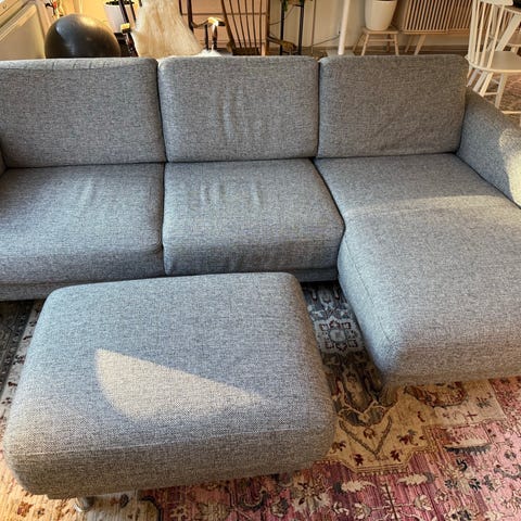 Sohva on hyvässä kunnossa, taloudessa lapsia niin hieman tahroja on ja pesu tulee ostajalle. Mukana tulee myös samaan sarjaan kuuluva rahi. Ollut muutaman kuukauden varastossa säilytyksessä (lämmin) kannattaa varautua pakulla tai peräkärryllä, sohva paloiteltuna valmiiksi. Omat kantajat mukaan.