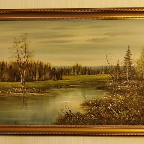 Hieno maalaus vuodelta 1961. Lapin maisemaa. Kehyksen koko n. 22cm x 40cm. Signeerattu.