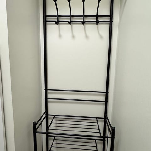 Erinomaisessa kunnossa oleva metallinen vaaterekki. Hyvin vähän kulumisen jälkeä ja niitä pieniä naarmuja mitä siinä on ei ilman lähempää tarkastelua huomakkaan