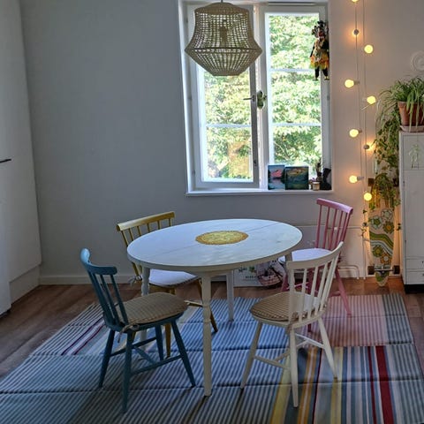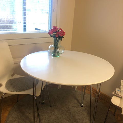 Myydään pyöreä valkoinen ruokapöytä,halkaisija 60cm korkeudensäätö kaasujosella max korkeus 90 cm.nouto/Käteismaksu