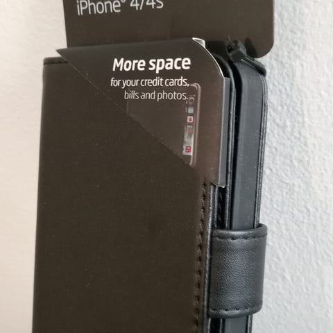 eStuff Lompakkokotelo puhelimelle IPhone 4, jossa on 2 luottokortti paikkaa.