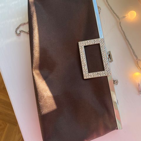 Myydään musta pieni iltalaukku hopeilla yksityiskohdilla. Erittäin hyvässä kunnossa, kaikki strassit paikallaan.