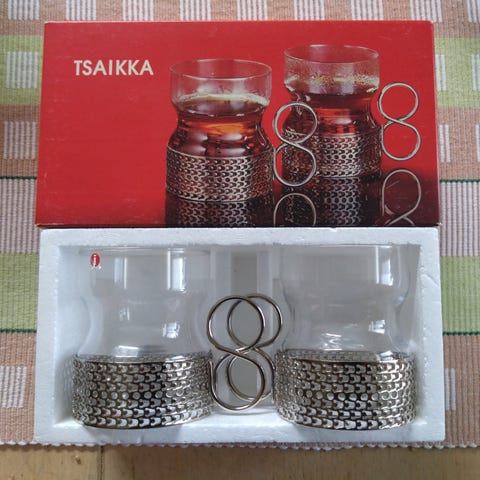 Tsaikka glögi/kuumajuomalasit 5 kpl, yhteishinta 40 e. Design Timo Sarpaneva.