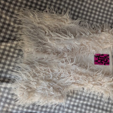 Nätti, ihanan pehoinen ja lämmin asuste vaikka juhlamekon päälle. Väri luonnonvalkoinen/kerma. Vuori liukasta kangasta.