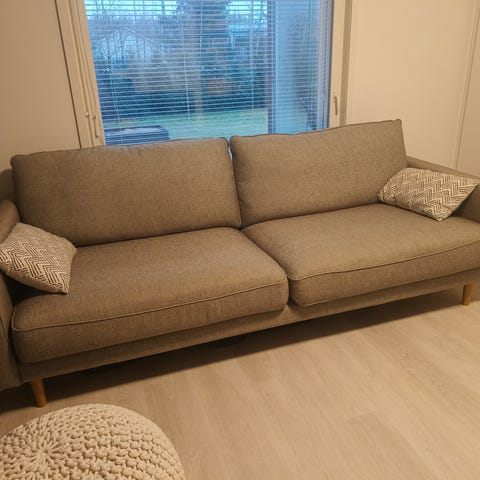 Erinomainen kunto. Pehmeää samettia. Ostettu Jotexista tai Vepsäläiseltä. Väri tummanharmaa. 3 istuttava, mukava istua. Kuvassa näyttää, että olisi keskeltä valoisampi/haalistunut muttei ole vaan kuva hämää. Kangas on ihanaa materiaalia! Ovh. 1200€.