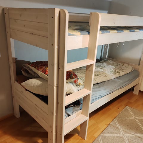 IKEA kerrossänky työpisteellä ja säilytystilalla valkoinen