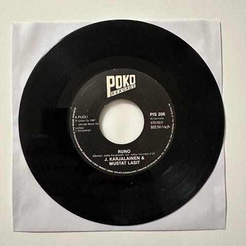 J. Karjalainen & Mustat Lasit Mikä mahtaa olla in / tiellä taan -single