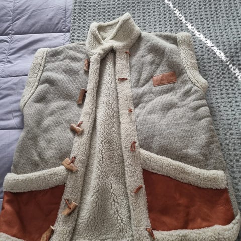 Ukrainasta ostettu harmaa liivi jossa turkistaskut. Koko vastaa parhaiten S kokoa