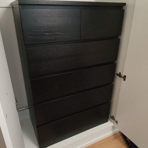 Väri tummempi tammi, laatikot ehjät ja siistit. Ei kolhuja. Vain nouto.