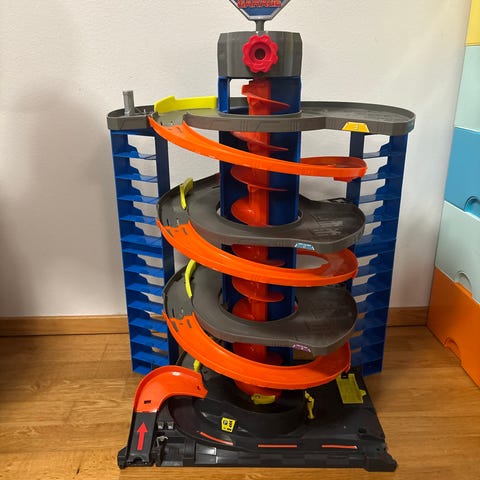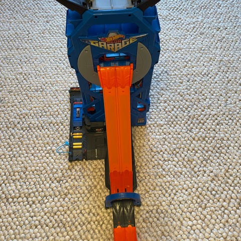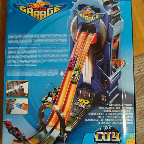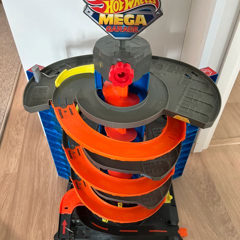 Hot Wheels Mega Garage, pyörivä mekanismi, vauhdikas lähtöliuku autoille. Hyvässä kunnossa seuraavalle leikkijälle.