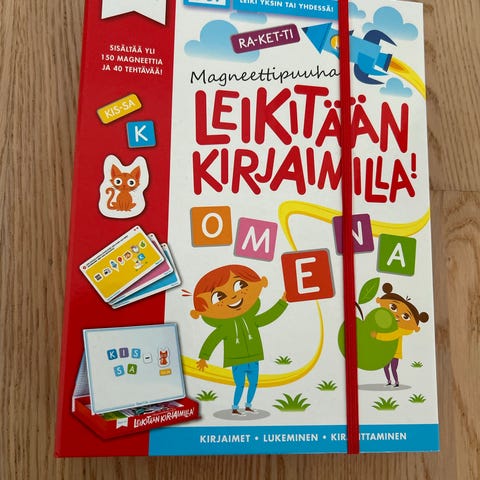Oppi&ilo Leikitään kirjaimilla! on magneettipeli, joka on suunnattu 5-8-vuotiaille lapsille. Peli sisältää magneettisia kirjaimia, sanoja ja kuvia, joiden avulla lapset voivat harjoitella. Yksi tavuviiva magneetti puuttuu. Nouto Hallila Tampere tai Toridiili.