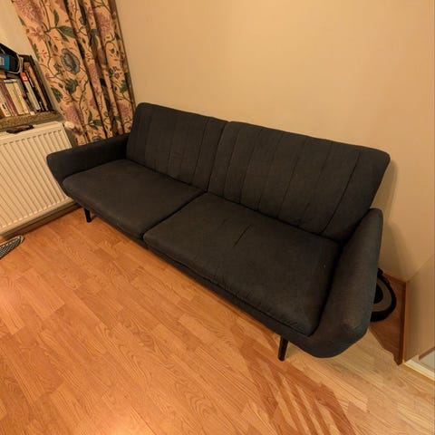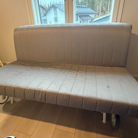 Annetaan Jyskistä ostettu vuodesohva. Käytönjälkiä, mutta eivät kuitenkaan haittaa käytössä, ihan siisti ja toimiva vielä seuraavalle.