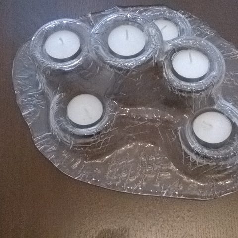 Lasipurkki kynttilätelineellä. Lasipurkkia voi toki käyttää myös maljakkona. Korkeus 22 cm, halkaisija 12 cm.