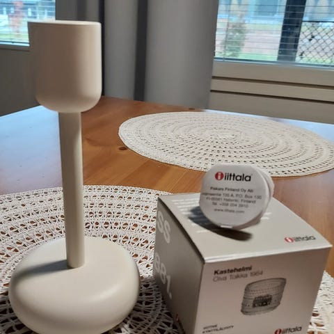 Lahjaksi aikanaan saadut, mutta käyttämättä jääneet 2 kpl kynttilänjalkoja alkuperäispakkauksissa.