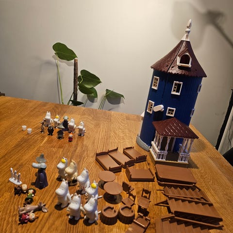 Ostan HYVÄKUNTOISEN muumitalon ja hahmot sekä kalusteet. Tarjoa hinnan ja kuvan kera. Kerro heti rehellisesti puutteet ja viat.