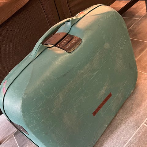 Myydään Samsoniten kovakantinen, nelipyöräinen matkalaukku. Ikäisekseen hyvässä kunnossa. Ulkokuoressa käytön jälkeä. Sisältä ehjä ja siisti. Pyörät ja vetokahva toimivat. TSA-lukko. Korkeus noin 75cm ja leveys 51cm. Painaa viisi kiloa.