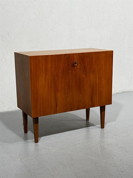 Puinen lipasto, jossa on yhdeksän vetolaatikkoa. Laatikot avautuvat sujuvasti ja niissä on koristeelliset vetimet, jotka tuovat esiin rustiikkisen ilmeen. Kunto on hyvä, mutta pinnassa on muutamia pieniä naarmuja ja kulumia, jotka kertovat sen iästä. Yleisilmeeltään siisti ja käyttökelpoinen.