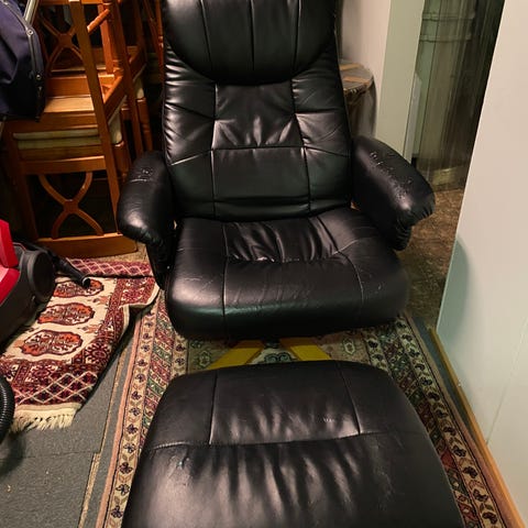 Nahkainen lepotuoli ja jakkara