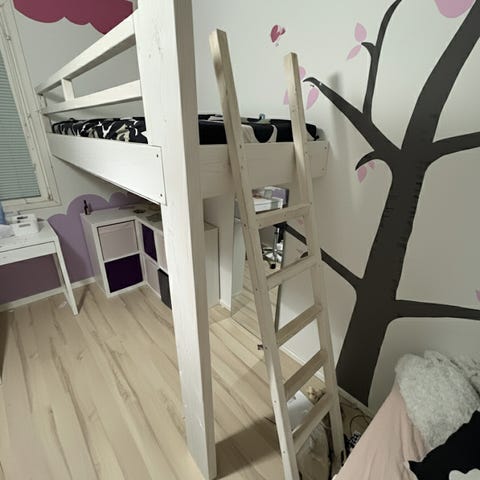 IKEA Parvisänky lastenhuoneen kaluste, valkoinen väri. Parvisänky tarjoaa tilaa sängyn alla esimerkiksi työpöydälle tai säilytykselle. Sopii lastenhuoneeseen.