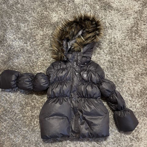 Name it kukkakuvioinen toppatakki, ollut ns. kauppatakkina käytössä. Koko 104.