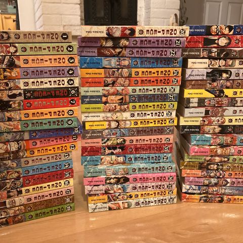 One Piece mangan osat 1 - 89 myytävänä. Suomenkieliset sangatsu mangan julkaisut. Hyväkuntoisia ja hyvin säilytettyjä pokkareita. Poikkeuksena numeron 35 selkämys joka on taittunut rutulle (ks. 2. Kuva).