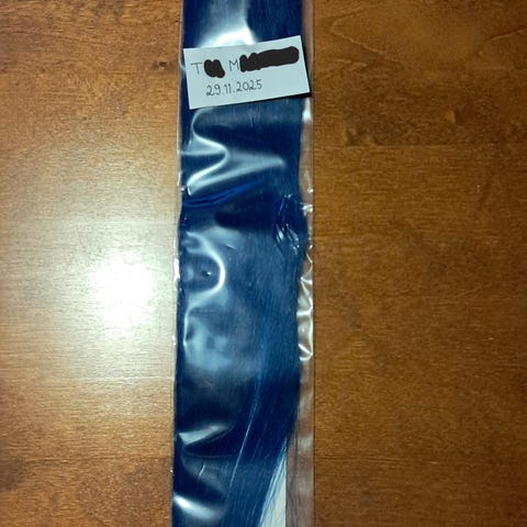 Paketti sisältää kaikki kuvassa olevat tuotteet; aito hius sinettipaketti 45cm(avaamaton), sinettien kiiinnityskolvi ( kokeiltu pari kertaa), suojasabluunat 4kpl, sinettienpoistoneste(melkein täysi), avaamaton pussi sinettejä (20kpl), ja sormisuojia. Mukaan saa halutessaan myös 30kpl uusia valmiiksi puolitettuja hiusosioita ( näistä osa värjätty itse). Tuotteet ostettu hiustuote.fi verkkokaupasta.