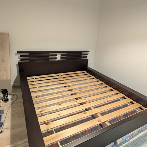 Sänky valmiiksi purettu osiin kuljetusta varten.