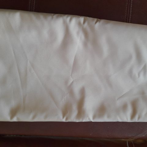 Paksu uusi kangas, tästä yritetty ommella jotain, jäänyt kesken, aukaisin saumat, silitin mutta ei ainakaan vielä häipyneet taitteen jäljet kokonaan. Palan koko 80 x 150 cm.