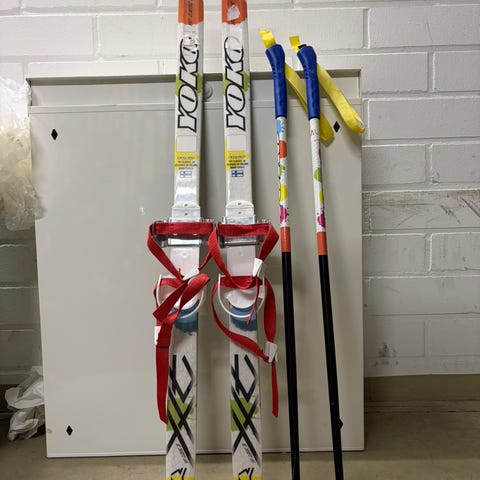 Vähän käytetty Yoko Lastensuksi-setti. 100 cm pitkät sukset + muovisiteet + sauvat.