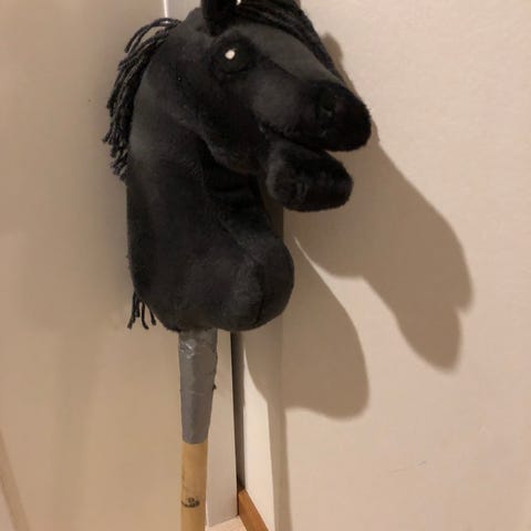 Tyttäreni ompelema musta keppihevonen valkoisilla merkeillä. Turpa maalattu. Nouto myös mahdollinen.