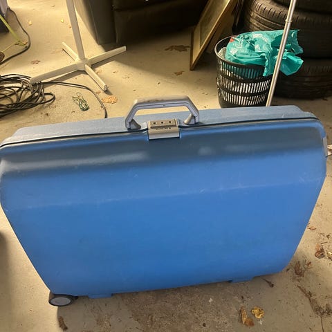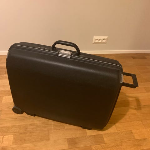 Cabin-kokoinen matkalaukku, pyörät toimivat hyvin! Sisältä revennyt kangas yhdestä kohtaa/vetoketjusta, mutta kestänyt silti käyttöä.