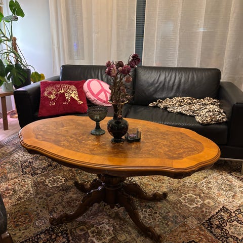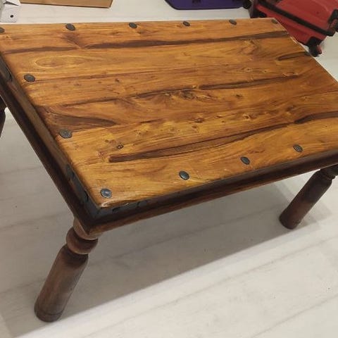 Kaunis, tukeva, täyttä puuta. Jaloissa pikku kolhuja.