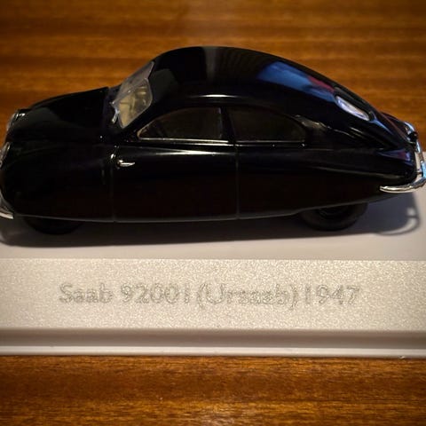 Saab 92B 1954 pienoismalli esittää klassista automallia. Malli on valmistettu tarkasti ja sopii keräilyyn tai esillepanoon.