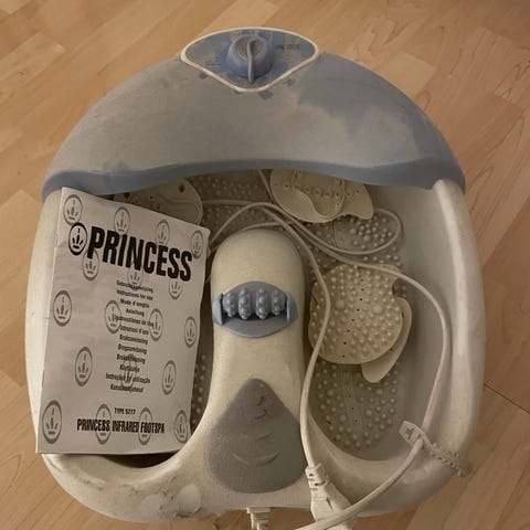 Vain muutaman kerran käytetty jalkojen kylvetys/hoitolaite. Hieroo,poreilee ja pitää veden lämpimänä. Mukana kolme jalkapohjia hoitavaa päätä.