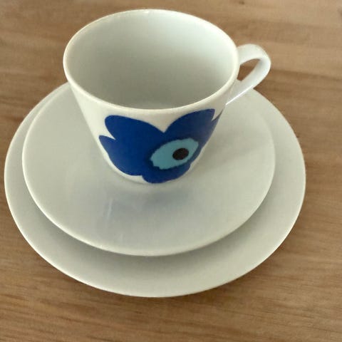 Asettit ja kahvikupit 6kpl, valkoiset nimettömät lautaset