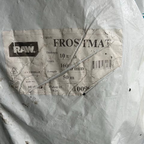 Rawin pakkasmatto. 10mm paksu, 2m leveä ja n. 30m rullassa jäljellä. (60m2)
