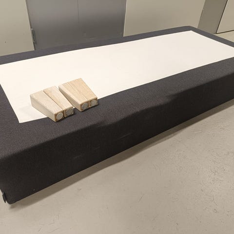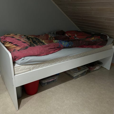 Tuoli ehjä, patja ei suostu "istumaan", koska siitä puuttuu yksi sidontanaru tai tarranauha miten nyt haluaa. Hyvä nukkua, kun on noi piennat eikä sellaista jousipohjaa. Sitä päällystä ei enää ole, mut siihen nyt voi heittää vaikka filtin päälle tai jos osaa niin ompelee sellaisen. Itse uloskantaen. Talossa ns. puolikkaan kerroksen raput. Niin ja tärkein asia kissakoti.