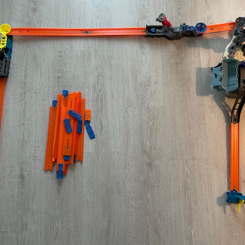Myydään Hotwheels Mega Garage, nippu ratoja ja autot kaupan päälle. Vain nouto.