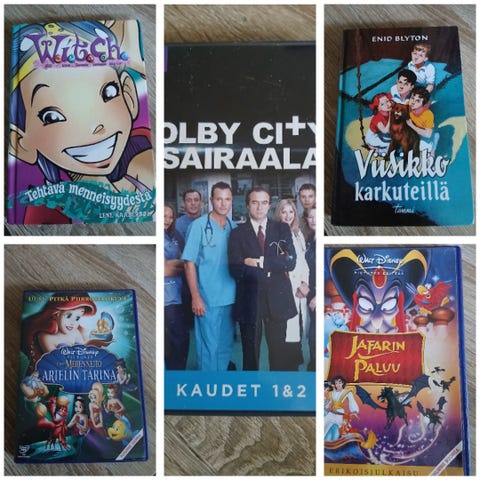 Annetaan kuvassa olevat dvd-elokuvat. Osaa levyistä on katsottu paljon ja osaa vähemmän, mistä johtuen levyjen kunto voi vaihdella. Se, miten nämä toimivat, jää ottajalle selvitettäväksi.