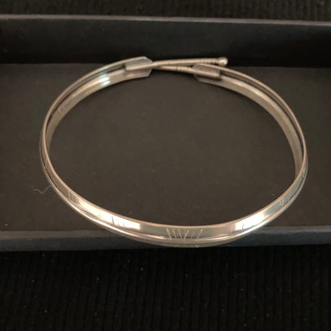 Myynnissä hyvin vähälle käytölle jäänyt Helakan hopealusikoista tehty rannekoru. Myynnissä myös korvakorut.
