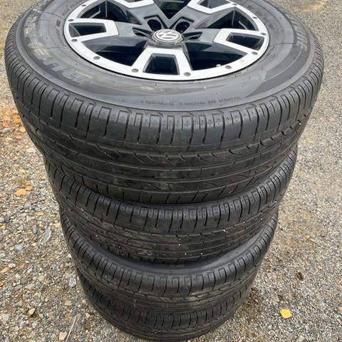 Amarokissa olleet toyo tires open country A/T kumit Range Roverin vanteilla. Ostettu kesäkuussa 2025 ja ajettu noin 10 tkm. Kumeissa vuoristo symboli eli saa ajaa huoletta vuoden ympäri. Eivät uudelle häpeä. Hinta koko paketille 1500€/ tarjous!