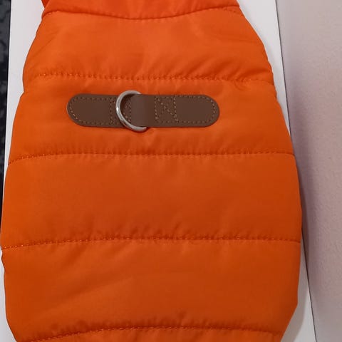 Koiran toppatakki, selänpituus 45cm, meidän lyhyt jalkaiselle koiralle on ympärysmitalaltaan liian iso.