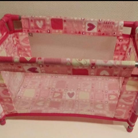 Vähän leikitty nuken matkasänky. Saa helposti kasaan.