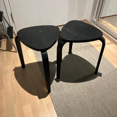Kaksi siistikuntoista Marius-jakkaraa.