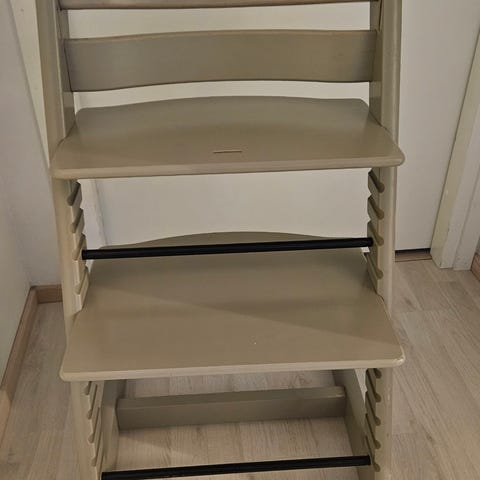 Stokke Tripp Trappin säilytyslokero, joka kiinnittyy tuolin selkämykseen. Kätevä esimerkiksi ruokalappujen säilyttämiseen.