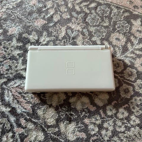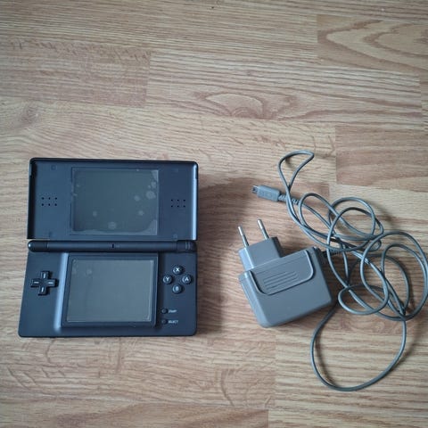 Tarkistettu Nintendo DS Lite käsikonsoli ja alkuperäinen laturi.
